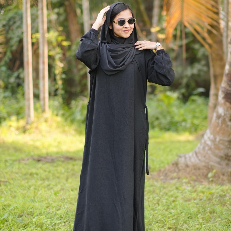 আমাদের এই বোরকাটির মূল আকর্ষণ হলো এর ফেব্রিক্স। সিওয়াই (CY) ফেব্রিক্স মানেই হচ্ছে একটা রাজকীয় অনুভূতি। অনেকে ভাবেন কাপড়টি প্লেইন না কেন? আসলে এর গায়ে থাকা হালকা ও সূক্ষ্ম কুঁচকানো টেক্সচারটাই একে অন্যান্য সাধারণ কাপড় থেকে আলাদা করে তোলে।